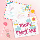 Design de cartão postal divertido e mágico da Terra do Fada dos Dentes, criado pela Fada dos Dentes.