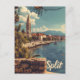 Uma ilustração cativante de Split, uma cidade histórica na costa Dalmácia da Croácia. A design mostra a antiga arquitetura romana, as impressionantes visões costeiras, e ruas vivas que definem esse belo destino. Com uma estética nostálgica e retrô, a trabalho de arte destaca a rica herança de Split e o charme mediterrânico, convidando os espectadores a experimentar seu alento eterno.