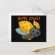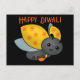Joaninha amarela com rangolis para pontos e um bindi de vermelhão, segurando uma deepa.