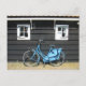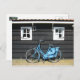 Blue Bicycle Dutch House em Holland Postcard. Uma bicicleta azul-damas estacionada numa típica casa de madeira holandesa com dois cartões postais com janelas. Este cartão postal de bicicleta holandesa excelente é totalmente personalizável, adicione seus textos e imagens!