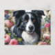 Cartão Postal do Border Collie com Rosas Rosa Vito