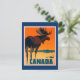 Viagens turísticas e ilustração de propaganda de viagem para o Canadá. Tem uma cena ao ar livre com alce. Acrescentei bordas gráficas coloridas e cuidadosamente desenhadas.