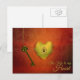 Ilustração encantadora e romântica com um coração dourado e uma chave em um fundo vermelho estruturado. Citação de amor em letra cursiva dourada: "A chave do meu coração".