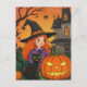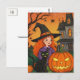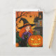 Cartão Postal do Dia das Bruxas com Gato Preto, Bruxas, Aranhas e Abóbora para Postcrossing