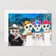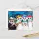 Que comece o Dia dos Mortos! Nossos gatinhos estão reunidos com seus rostos pintados e irmãozinho tocando a buzina, prontos para comemorar com a família e amigos neste cartão-postal divertido!
