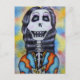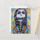 Este esqueleto do Dia dos Mortos feliz e sorridente é de meu desenho original a lápis colorido. Este esqueleto está vestido para sua celebração do Dia dos Mortos com um xale colorido de laranja e azul e está segurando flores brancas. O fundo tem uma aparência de aquarela com amarelos, rosas e azuis. Veja minha loja Art by MAR para mais produtos com esta imagem.