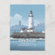Arte colorida do farol de Boston e a silhueta da cidade ao fundo. Faça um passeio de barco pelo porto de Boston para ver este farol magnífico. Perfeito para quem ama esta parte fantástica de Massachusetts.