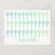 Cartão-postal do felz pascoa. Árvores azuis e verdes em papel branco.