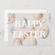 Cartão postal do felz pascoa em cores cor rosa suave com saudação personalizada.