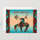 Personalize este cartão postal de Natal "Único" Fim da Trilha! Ele apresenta um índio americano Fim da Trilha e um cavalo em um fundo de pôr do sol turquesa e laranja... Cercado por uma borda turquesa, laranja e preta! Desenho de Arte Original do Artista Kerry Miller.