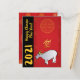 Ilustração de búfalo d'água no estilo história em quadrinhos colocada no padrão tradicional chinês vermelho como fundo + ano ouro do Ox no centro com banda vertical preta para a moderna inscrição amarela : Feliz Ano Novo Chinês e grande 2021 para personalizar se você quiser. Design no cartão postal vertical. Você pode facilmente alterar esses textos (fonte, cor, tamanho e posição) clicando no botão personalizar. Cartão de boas-vindas, cartão postal de férias, convite, artesanatos, suprimentos de festas e muito mais... Perfeito para um divertido Ano Novo Chinês do Ox 2021 ou Aniversário (nascer pessoas no Ox ano).