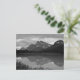Um lago canadense reflete as montanhas e a paisagem, em preto e branco.
