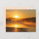 Fotografia de um lago com neblina ou neblina durante o nascer do sol, exibida em um cartão postal.