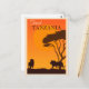 Qualquer um adoraria receber este cartão postal viagens vintage com uma ilustração retrógrada dos leões na Tanzânia, África e promovendo o turismo africano!