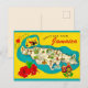 Um cartão postal retrô maravilhosamente colorido do mapa da Jamaica reaproveitado como um novo cartão postal!