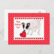 Cartão-postal do Dia de os namorados Jack Russell Terrier. presentes divertidos de excelente para amantes de cães que são donos de JRT! Um adorável Jack Russell Terrier está mastigando o Coração Vermelho! Arte canina única e engraçada pintada por Naomi Ochiai do Japão. Você pode personalizar texto e muito mais!