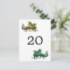 Perfeito para um elegante jogo de mesa de fantasia O casamento temido é este cartão postal de mesa nerd e único Dragon Wedding com um dragão dourado e dragão verde vibrantes. Fácil de personalizar, basta adicionar o(s) número(s) de tabela apropriado(s) nos campos de texto fornecidos. Clique em "Personalizar" para encontrar mais opções de personalização.