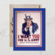 Esta bela imagem vintage do Tio Sam apontando com o texto: "Eu quero você para o exército americano" seria perfeito para enviar para a família e amigos. Excelente para você ou como presente.