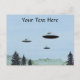 Uma aquarela, caneta tinta e desenho a lápis colorido de três OVNIs em forma de pires sobre as montanhas. Personalize alterando o texto para se adequar a você!