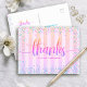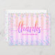 Uma maneira divertida e brilhante para a aniversariante mostrar seu apreço a todos que apoiaram seu evento de marco! Mande para fora este espantoso, moderno, minúsculo e cintilante ponto de confete azul-turquesa e um script de tipografia ombre cor-de-laranja-rosa contra uma rosa claro e fundo listrado com brilho no arco-íris ombre, obrigado personalizado que você faz cartão-postal. Na frente, personalize com o nome dela. Digite uma nota personalizada e um endereço de retorno no verso. Garantido para adicionar um toque na moda à correspondência dela! Convites, pratos, guardanapos e outros doces de aniversário também estão disponíveis nesta moda e coleção especial. Na frente, digite o nome da aniversariante e você pode personalizar facilmente esse obrigado que você faz. Adicione uma nota personalizada e um endereço de retorno na parte traseira. Por favor, me mande mensagens com quaisquer perguntas ou solicitações.