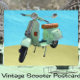 O patinete de colheita é verde de menta com um assento de couro. Ele está estacionado contra um fundo colorido que consiste em verde abacate e um azul-céu brilhante.