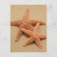 Duas estrelas de açúcar grandes numa praia suave de areia.