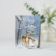 Lindo cartão postal de arte vintage restaurado, dois cervos bebês com manchas andando pela neve e pelas árvores de uma floresta escura e fria. Totalmente personalizável.