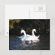 Dois adoráveis Cisnes de Mute e um Pato de Mallard colorido no rio Wye em Bakewell, em Derbyshire, Inglaterra. Fotografado no inverno com o rio em cheio.