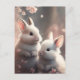 Cartão Postal Dois coelhos bonitos com flores de cereja