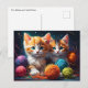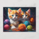 Cartão Postal Dois gatinhos em grão com bolas de fio