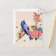 Cartão Postal Dourada Azul Pássaro Vermelho Borboleta Brilhante