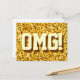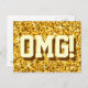 Cartão postal com um design moderno com estrelas espalhadas sobre um fundo estilizado de "aparência sequencial" e 'OMG!' em tons de amarelo e marrom. Pode ser usado como um fundo para o seu próprio texto, imagens e ideias. Observe que esta é uma imagem de arte digital impressa, ela não brilha ou contém cinzas ou sequências reais.