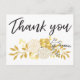 Ouro moderno e design floral preto Obrigado cartão postal com uma letra escrita à mão. Edite isso com uma mensagem pessoal.