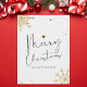 Este belo cartão-postal de Natal apresenta um elegante design preto e branco, adornado com estrelas ouros e flocos de neve cintilantes. A elegante caligrafia do "Feliz Natal" acrescenta um toque moderno, mas sofisticado, perfeito para enviar desejos quentes de férias. Quer estejamos a celebrar com a família ou a enviar saudações de longe, este cartão postal é uma forma espantosa de espalhar a alegria da estação.