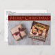 Cartão Postal Dourado Natal Presente em Foto do Deck de Neve
