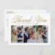 Cartão Postal Dourado Script Três Foto Colagem Casamento Obrigad