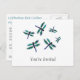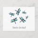 Este design de libélula azul está pronto para adicionar seus detalhes de eventos, convidados etc. A libélula está dançando em volta, no humor da festa! São da minha pintura de vidro original. Copyright Annabel Potter