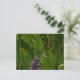 Cartão Postal Dragonfly azul sobre uma flor roxa