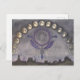 As formas escuras de uma paisagem desértica sentam-se sob um céu meio iluminado, pouco claro se está enterrado ou amanhecer, fora do alcance como um sonho. Uma caçadora de sonhos de geometria sagrada, adornada com penas de índigo, cordas prateadas, e uma flecha de terra, pendura no céu, coroada pelas fases da lua. Cores d'água e Lápis Colorido.