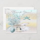 Teal and Natural Tones Sonhando a costa macia da praia mostrando a espuma marinha na areia - uma estrela, coral, ostra com um dentro de pérolas e um caracol-do-mar adornam o primeiro plano. Faz com que você queira chutar suas calçados e correr para a praia - Casamento de praia de destino perfeito ou outro convite para festas - todos os campos de texto são personalizáveis, para mudar para qualquer festa que você esteja tendo.