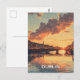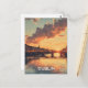 Cartaz do rio Liffey, em Dublin, ao pôr do sol, com luz quente refletindo a água e as pontes históricas a brilhar à noite.