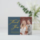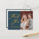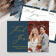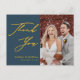 Um Dourado Escrito Elegante Azul Dusty Foto Minimalista Foto Moderna, Obrigado Cartaz. Expresse o seu agradecimento aos seus amigos e família que fizeram do seu casamento um especial extra com este belo cartões de agradecimentos de fotos de casamento. Todos os textos estão pré-organizados para que você personalize fácil e rapidamente com suas próprias palavras.