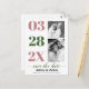 Cartão Postal Dusty rosa, musgo verde duas fotos Salve a data