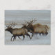 Cartão postal de alce macho. Alces machos correm pela neve nas pradarias de Alberta, os alces podem se mover muito rapidamente e podem percorrer muitas milhas em um curto espaço de tempo.