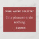 Um postal cor-de-rosa avermelhado com uma frase latina. "É agradável não fazer nada", do advogado romano Cícero. No mundo ocupado de hoje é essencial tirar algum tempo, não fazer nada, e relaxar.