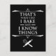 É o que faço, Assar e sei de coisas. Esta citação engraçada de cozinhar é um presente de excelente para um homem, mulher, adolescente e criança que adoram assar na cozinha. Também perfeito para um padeiro ou um trabalhador de padaria. Se você é um padeiro doméstico, ama as artes culinárias, e adora preparar um pão delicioso, muffins, bolos ou cupcakes no forno, então esse design humorístico é para você.