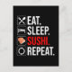 Cartão Postal Eat. Sleep. Sushi. Repeat