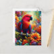 Cartão Postal Eclectus Parrot com Flores Coloridas