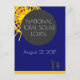 A imagem da cinza escura simboliza a Lua que cobrir a imagem amarela e laranja do sol brilhante, tudo no topo e no canto superior esquerdo de uma placa. Texto branco Eclipse Solar Total Nacional contra a Lua. Texto branco em 21 de agosto de 2017 sob a Lua contra fundo azul escuro. A linha amarela no fundo simboliza a Terra. Duas silhuetas escuras masculinas e femininas no canto direito de uma carta observam o fenômeno astronômico natural. Texto informativo na parte de trás do cartão. Você pode alterar ou excluir imagens e textos de modelo. Um cartão postal para qualquer um.