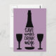 Cartão Postal Economize Água Beba Vinho Garrafa Preta Dois Copos